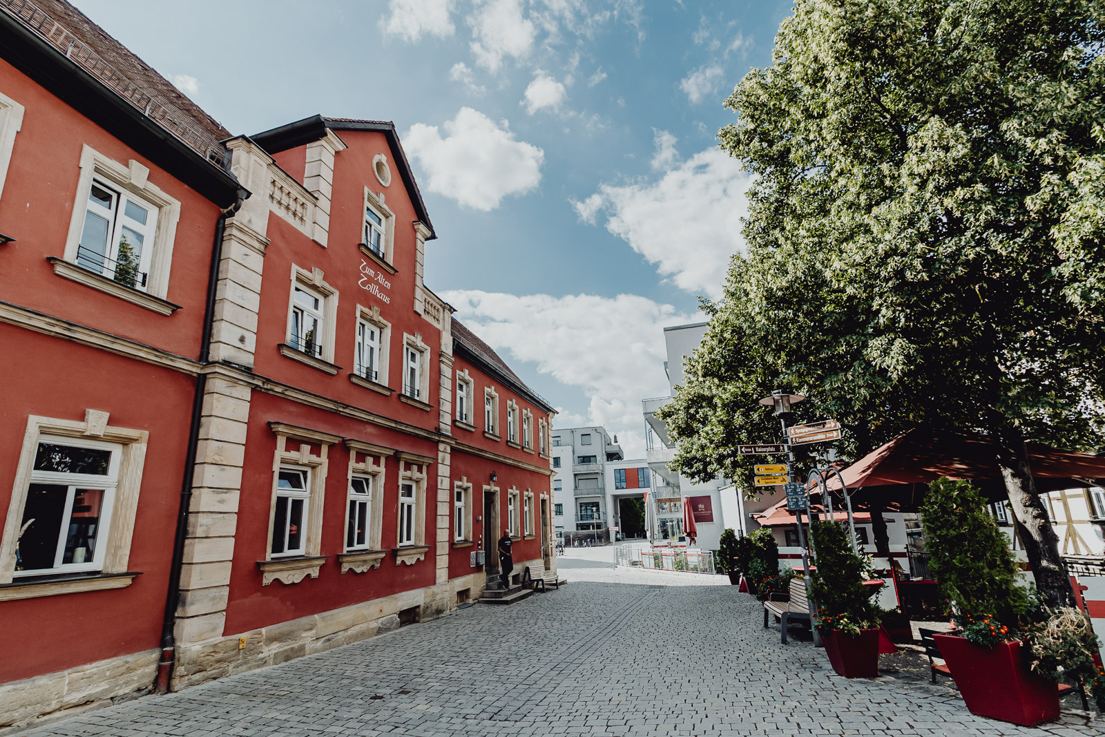 Im Biergarten, dem Platz für Sonnenanbeter direkt an der Wiesent, sitzen ganz bequem 50 Personen, mit Blick auf das geschäftige Treiben in der Altstadt und das Katharinenspital.
